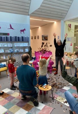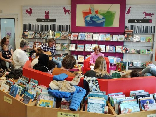 Tijdens de Nationale Voorleesdagen stond dit jaar het prentenboek ‘ Maximiliaan Modderman geeft een feestje van Joukje Akveld centraal. Dit boek is verkozen tot prentenboek van het jaar 2023. Het prentenboek gaat over een jongetje dat alleen thuis is en een feest voor zijn speelgoedbeesten organiseert. Een uitbundig en herkenbaar verhaal voor alle kinderen die er weleens een puinhoop van maken. Op woensdag 8 februari organiseerde de bibliotheek twee theatervoorstellingen passend bij het boek van Jouke Akveld. Marianne van Houten had een mooie muzikale voorstelling. Vanuit een kleurrijk decor zong ze haar eigen liedjes en speelde ze met veel humor en energie. In totaal zijn de voorstellingen door 80 mensen gezien.