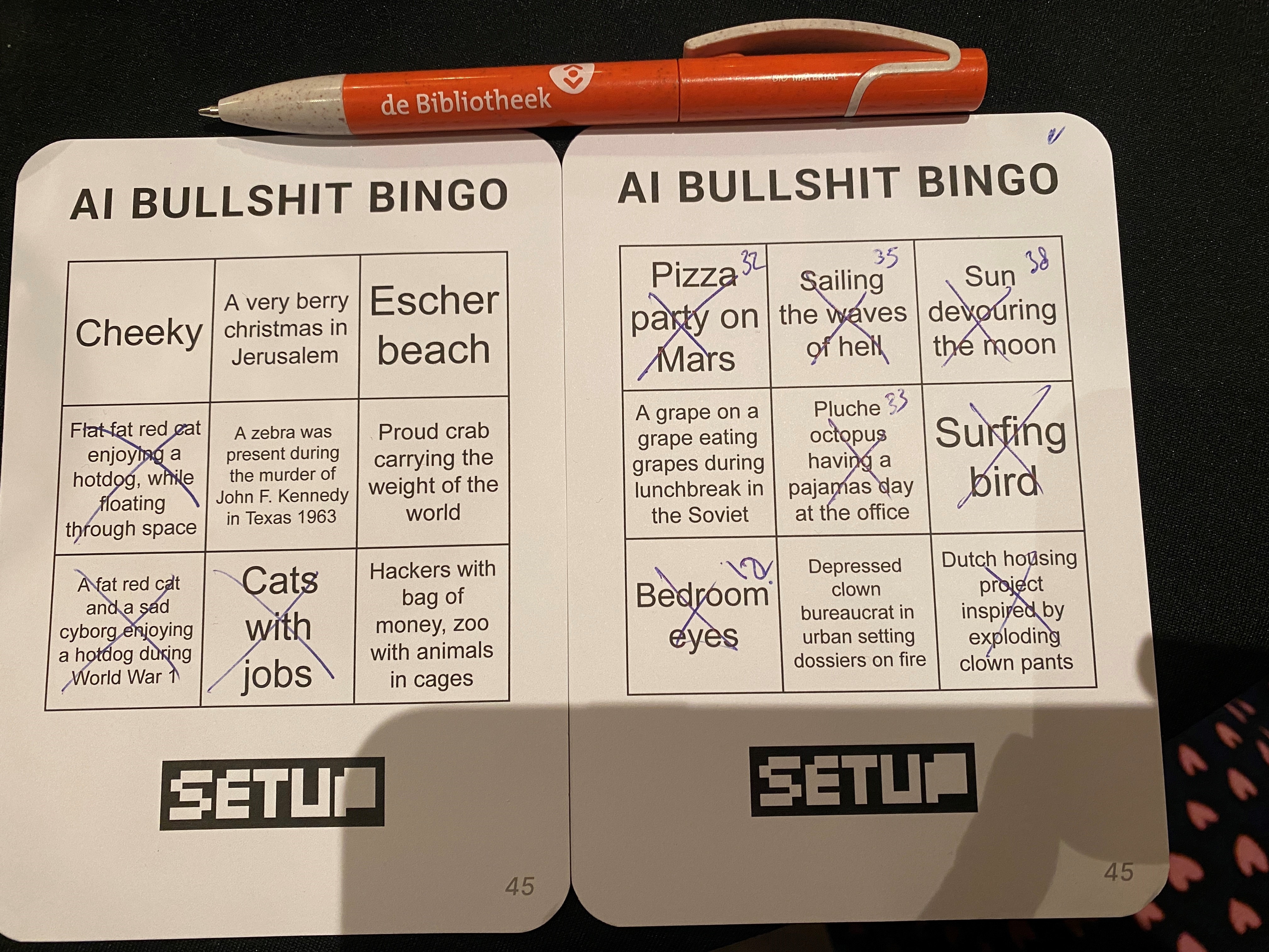 Tijdens onze jaarafsluiting met vrijwilligers speelden we een AI Bullshitbingo. Twee medewerkers van SetUp verzorgden dit voor 125 vrijwilligers en medewerkers.